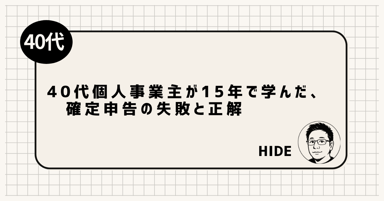 確定申告を15年間やってきた個人事業主が、実際に損をした経験から学んだ「やっておけばよかった」を全部まとめた。難しい話は抜きにして、40代が今すぐ使える基本だけを伝える。